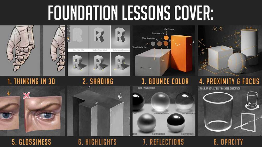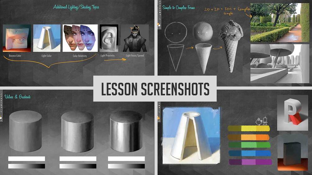 This course is designed for the motivated self-study artist. Each lesson is a 1080p video and comes with homework assignments and a homework review video where Clint critiques a student’s completed homework. It is intended for the artist to watch the video lesson, complete the homework assignments, then watch the homework review video to aid in the self-critique of their assignments.